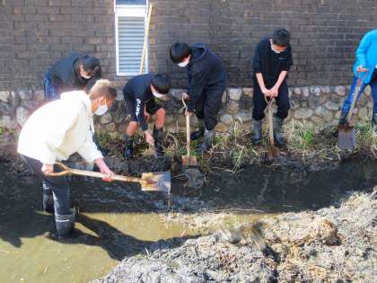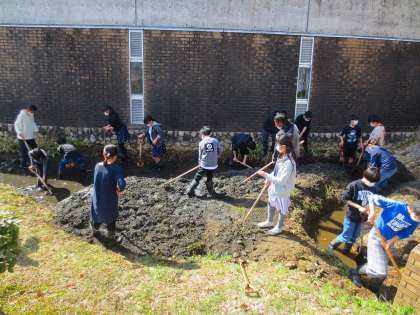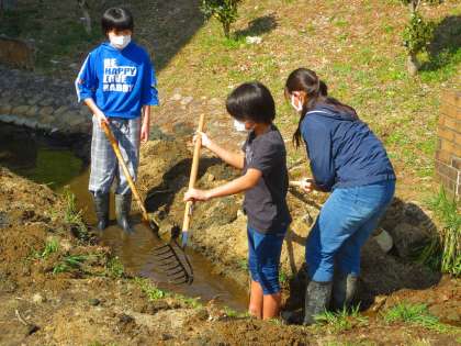 一見汚いように見えますが、上流から流れてきた土と草木の混じった物で、乾けば栄養豊富な土なんです。