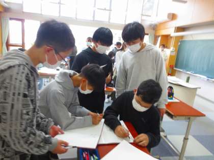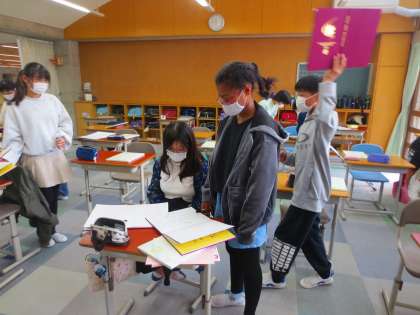 今日、卒業アルバムを渡しました。メモリーのページがあるので、互いに書き込んでいます。