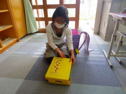 6年生はすでに持ち帰りは済んでいますが、他学年も持ち帰る物を整理整頓しています。