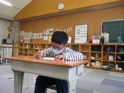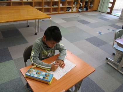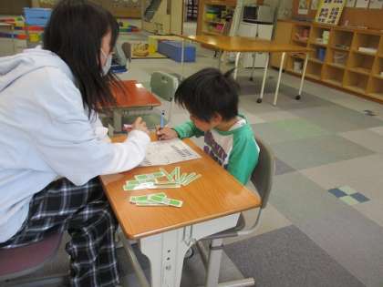 あおば組は、国語と算数の学習をしています。それぞれの課題に真剣に取り組んでいます。