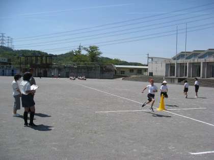 3時間目、5・6年生は50メートル走を計測。8秒台前半の子もいました。