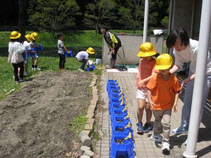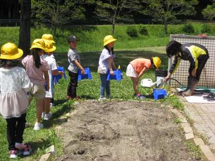 種まきをして、「おおきくな〜れ、おおきくな〜れ」と、種に声を掛けていました。
