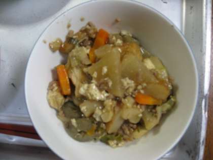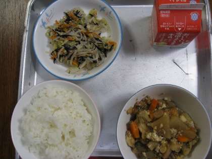 大根のそぼろ煮、ひじきと春雨の和え物、でした。