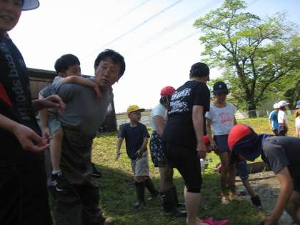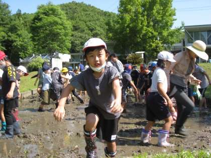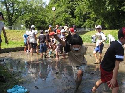 まずは、とにかく足で土をかき混ぜてドロドロにします。
