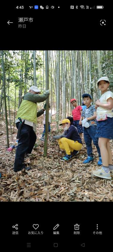 昨日の5時間目は、瀬竹会の人に来ていただいて竹林の整備をしました。