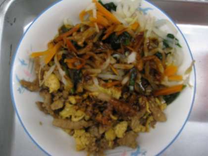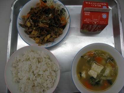 ビビンバ、キムチスープ、麦ご飯、でした。