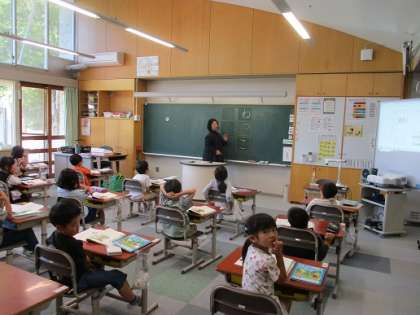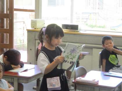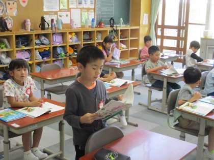 国語の授業で、促音の学習をしています。「ねことねっこ」という単元で、小さい「っ」の使い方に気をつけて音読をしています。