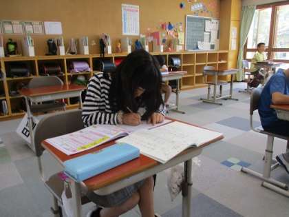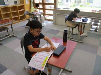 国語の授業で、漢字の学習をしています。みんな、丁寧に書き順に気をつけながら取り組んでいます。