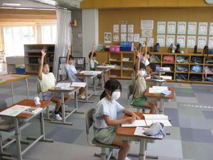 算数の時間、「1分=?秒」の問いに、ほとんどの人が挙手していました。