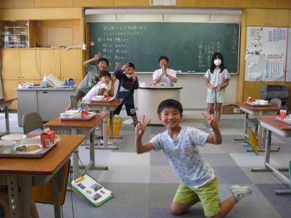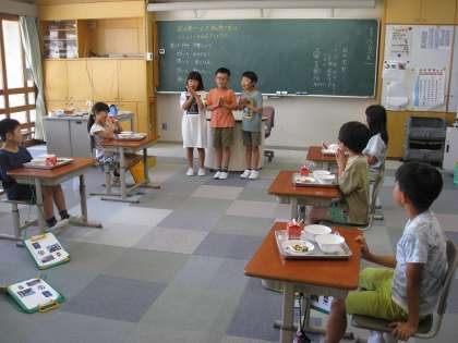 校長先生が、3年生の教室で給食を食べることになりました。