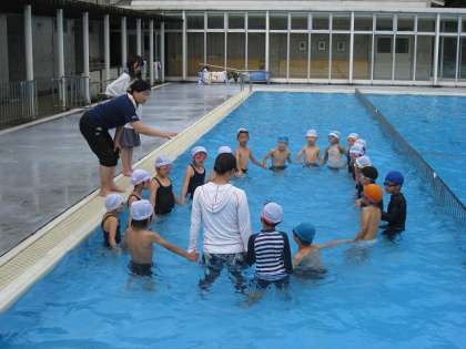 1時間目からプールに入りました。昨日、暑かったので、水温は25度ありました。