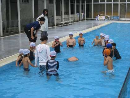 「ふしうき」をしたり、手をつないで水遊びをしました。