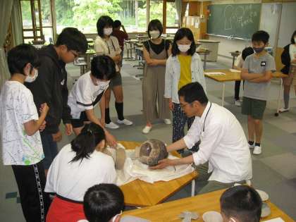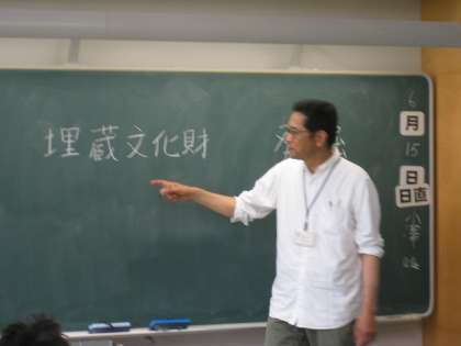 今日は、瀬戸市埋蔵文化財センターの方が来ていただいて、品野地区の「遺跡」について勉強しました。