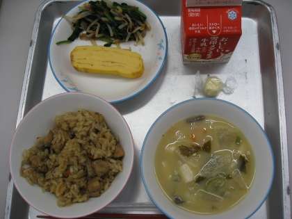 とりめし、呉汁、厚焼き卵、ほうれんそうのおかか和え、キャンディーチーズでした。