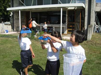 昨日、草刈りをしたばかりでしたので、残った草原に無視が集中して、虫取りには最適でした。