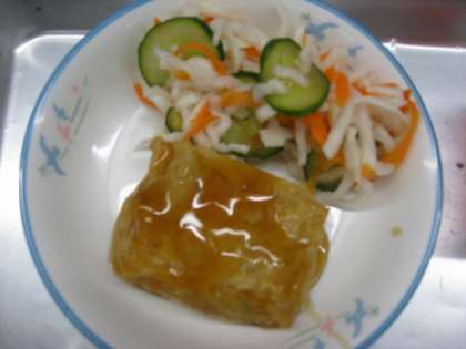肉じゃが、信田煮の和風あんかけ、切り干し大根の甘酢和えでした。
