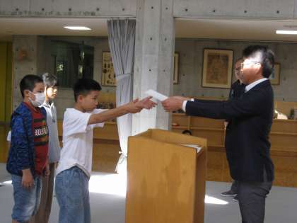 まず、児童会役員となった4名が認証されました。