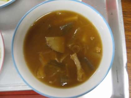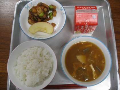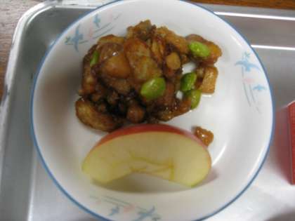 利休汁、ごぼうと鶏肉の甘辛あげ、りんご、でした。