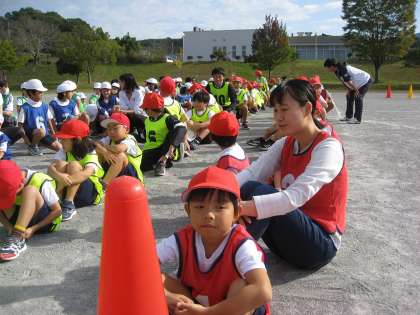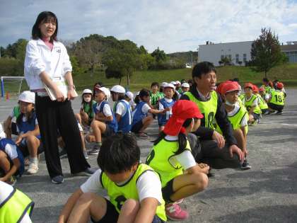 業前と、1時間目も少し使って、全員リレーの練習をしました。