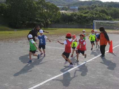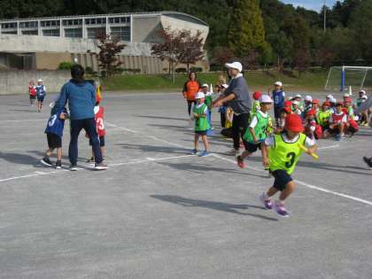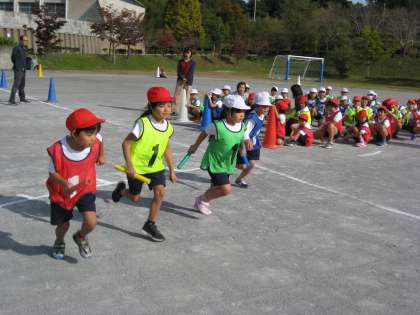 雷管を鳴らして、「スタート!」と思いきや、バトンを渡す人を間違えてしまったので、もう一度やり直しました。