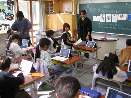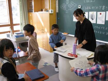 図工と算数の様子です。図工は、版画の下絵を考えていました。