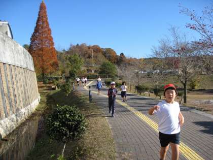 2年生は、1時間目もジョギングそしていました。持久走大会のコースを走りました。