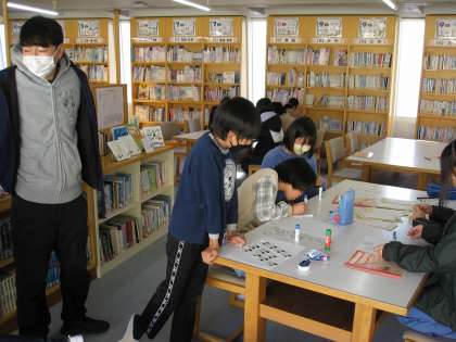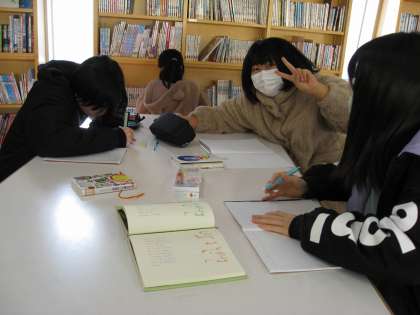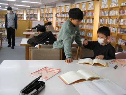 4時間目、図書室で文集作りを相談しながら進めていました。