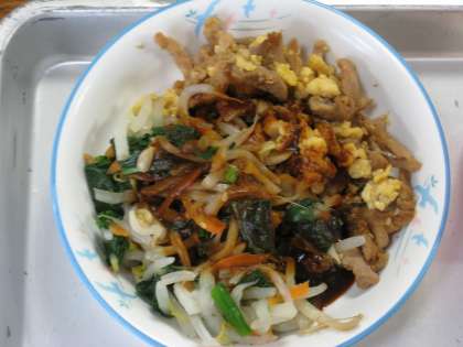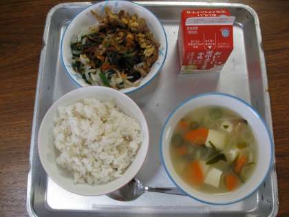 麦ご飯、トックスープ、ビビンバ、でした。スープにおもちがたくさん入っていました。