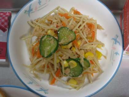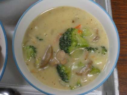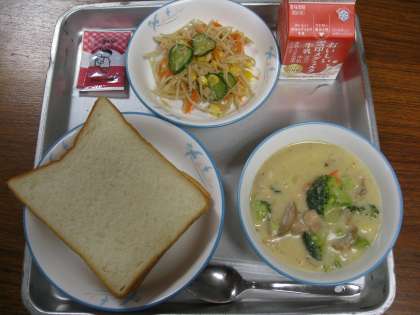 スライスパン、さつまいもシチュー、ごぼうサラダ、大豆チョコ、でした。