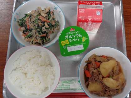 肉じゃが、千草あえ、ヨーグルト、でした。