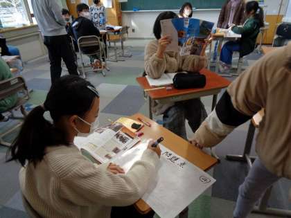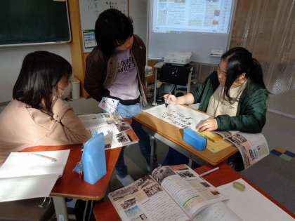 民主主義について、グループごとに考えをまとめていました。