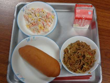 瀬戸やきそば、切り干し大根サラダ、小型ロールパン、でした。