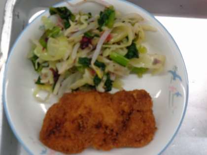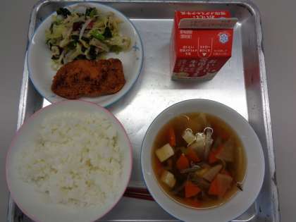 けんちん汁、三河赤鶏ノチキンカツ、小松菜の梅あえ、でした。