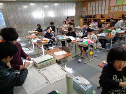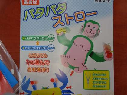 ストローと箱を使って、仕掛けで動くおもちゃみたいな物を作っています。
