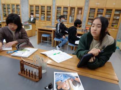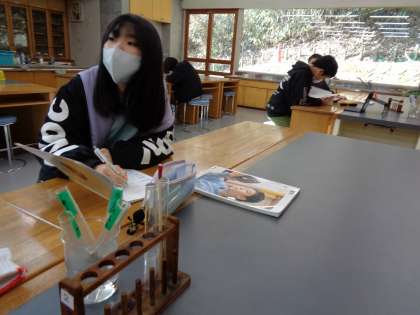 理科室で実験していました。何やら試験管から「嫌な臭い」がしてくるらしく、子どもたちから臭いをかぐことを勧められました。でも、私の鼻では年のせいか匂いませんでした。