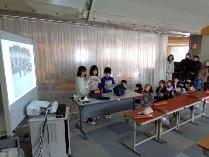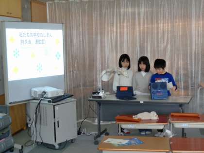 学校の自慢できるところについて、調べ学習したことを発表しました。