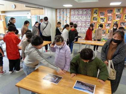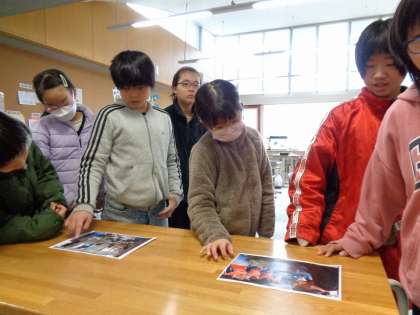 ワークスペースのテーブルの上に、東日本大震災の写真が置かれていました。