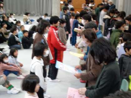 子ども達からメッセージカードを手渡して、「スマイルアゲイン」を歌いました。