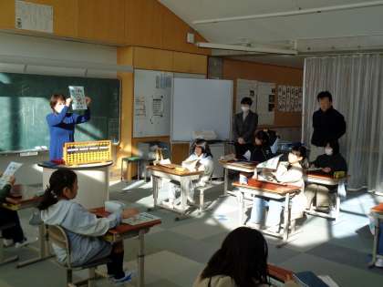 1・2時間目に、そろばんの先生と商工会議所の方が来られて、そろばんを教えていただきました。