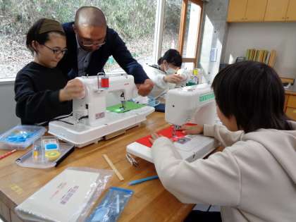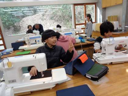 練習布を縫っていましたから、まだまだ初歩の段階ですね。