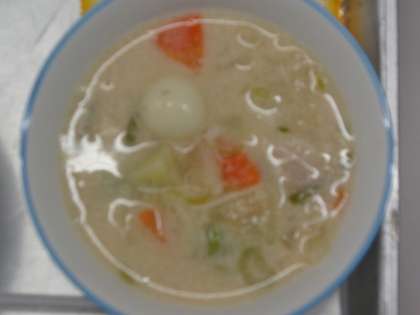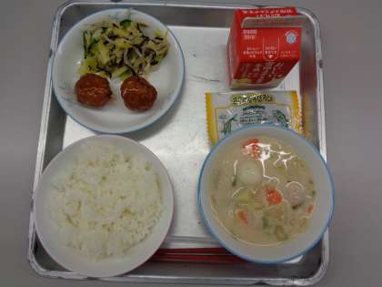洋風団子汁、レンコン入りつくね、昆布和え、さかなそぼろ、でした。