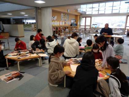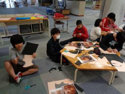 とても楽しそうにヒミツの作業をしていました。はさみを持って、顔写真を切っていました。