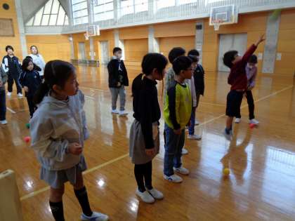 ボールを二つ投げてみるのですが、ボールが跳ね返ってしまし、かなり苦戦していました。