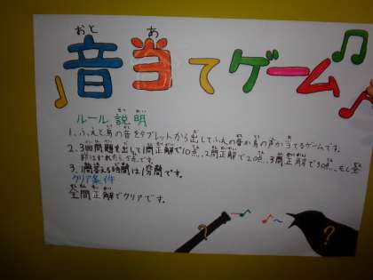 「音当てゲーム」は、タブレットから、鳥のさえずりなど、いろいろな音声が流れてきました。子どもにとっては難しいようでした。いろいろな体験を経験させることが大切だと感じました。