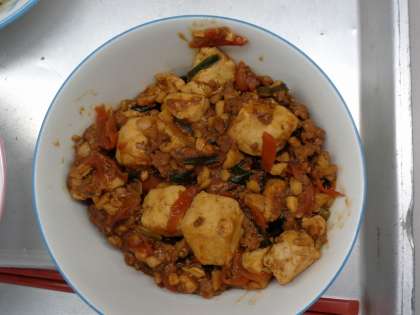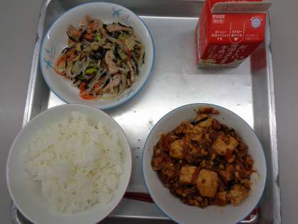 ごはん、マーボー豆腐、ひじきと春雨の中華和え、でした。