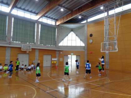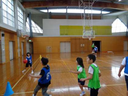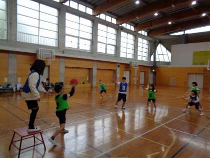 運動場は、少し水たまりがありましたので、体育館でポートボールをしました。