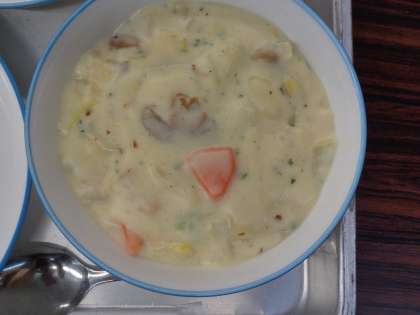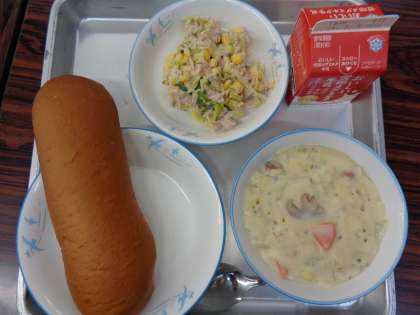 黒ロールパン、白菜のクリームシチュー、ツナサラダでした。