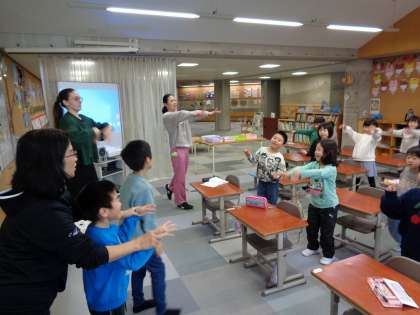「つま先」とか「ひざ」とか、ボディータッチしながら英語の勉強をしていました。