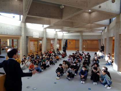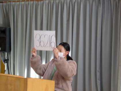 児童会の人が、「令和6年能登半島地震」の義援金の報告をしました。