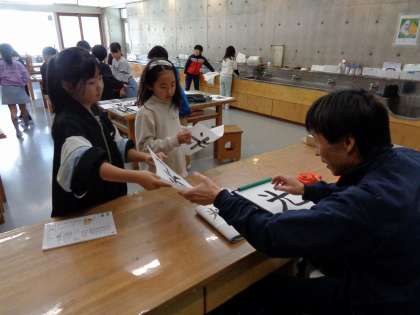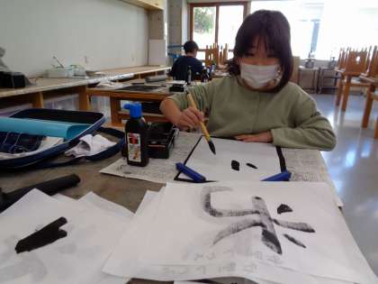 毛筆は3年生から取り組みます。そろそろ1年。上手になってきましたか?